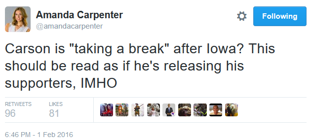 Amanda Carpenter initiated the idea of converting Carson caucus goers to Cruz
